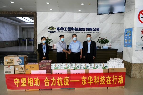 近日,合肥“4.18”疫情给东华科技所在的芜湖路街道望东社区的防疫工作带来较大压力。4月21日,公司党委副书记、总经理郭贵和代表东华科技向社区防疫一线的工作人员致以敬意,感谢他们为守护辖区的平安做出的贡献,并向社区捐赠了一批防疫物资。