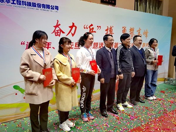 近日,东华科技第二十五届职工乒乓球比赛暨“迎新年·庆元旦”主题活动如期举行,公司党委书记、董事长李立新,党委副书记、纪委书记桑艳军,一级专务吴光美,工会主席桂长田莅临现场,100余名选手参加本次活动。