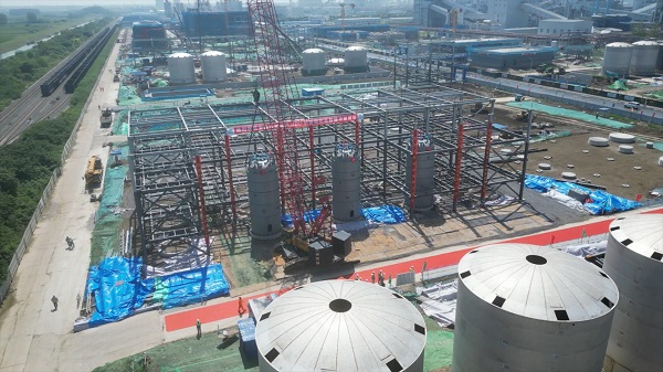 8月31日,中国化学东华科技总承包的华塑股份产品结构调整一体化项目年产12万吨生物可降解新材料首台设备炔化反应器顺利吊装就位,标志着项目进入安装施工高峰期。