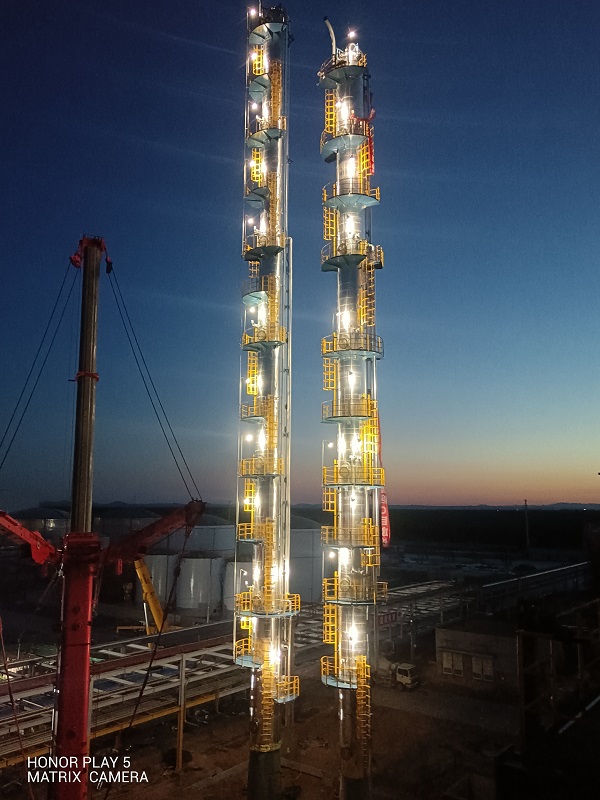8月13日上午8时58分,东华科技所属中化学(内蒙古)新材料有限责任公司30万吨/年煤制乙二醇项目第一台“穿衣戴帽”设备常压塔吊装顺利完成,实现“塔起灯亮”,标志着项目顺利完成了“百日会战”活动又一重要节点目标。