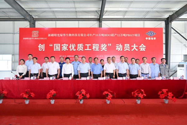 7月6日,东华科技总承包的新疆曙光绿华年产10万吨BDO联产12万吨PBAT项目创“国家优质工程奖”动员大会在新疆第二师铁门关市双丰工业园隆重召开。