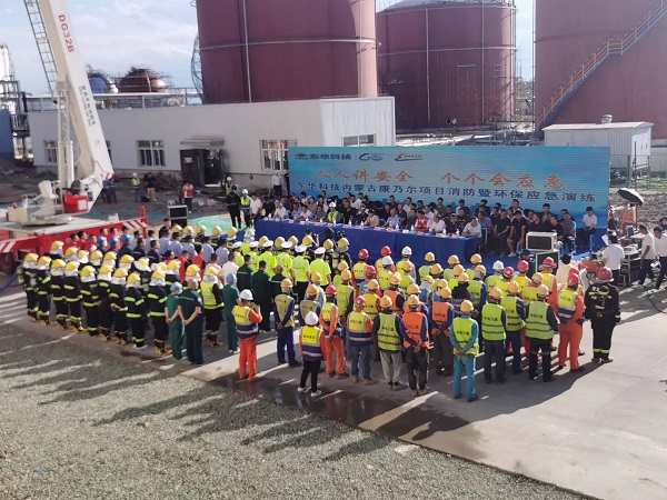 6月29日,东华科技内蒙古康乃尔煤制乙二项目与扎鲁特旗政府、鲁北产业园联合开展了生产安全事故暨环保综合应急演练。扎鲁特旗旗委副书记、旗长包文兰及相关政府部门领导、内蒙古康乃尔化学工业有限公司董事长、内蒙古康乃尔项目负责人观摩应急演练。