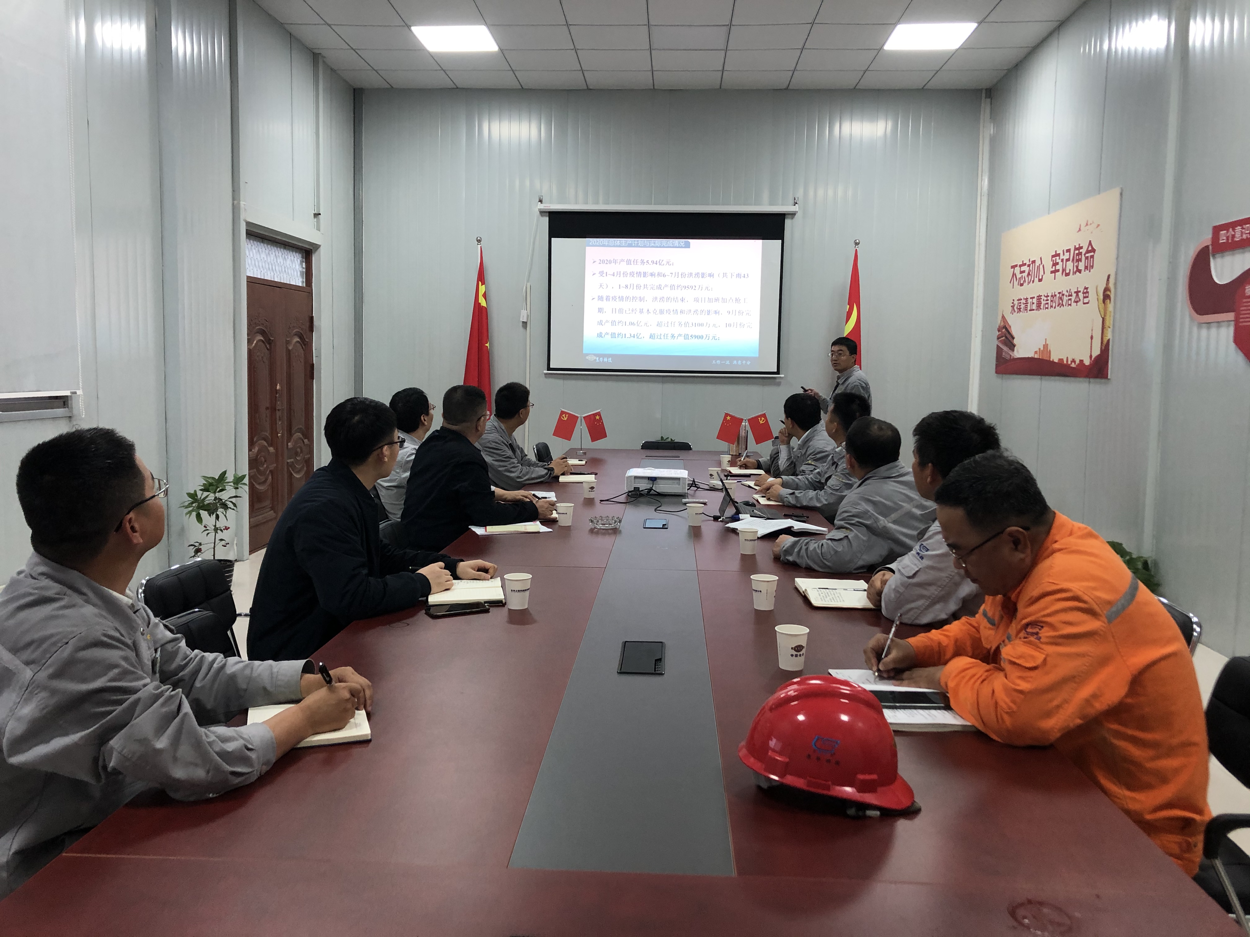 桑艳军对项目建设和党建工作取得的成绩表示赞扬,并结合项目管理创新和党建与生产融合提出了几点要求。一是要继续加强项目信息化建设,加强过程梳理和经验总结,努力打造具有东华科技特色的项目管理信息化系统。二是要注重党建融合,要发挥现场党员的先锋模范作用,围绕智慧化工地、智慧仓储的工作重点,创造平台,搭建载体,引导党员创先争优。三是要发挥党建牵引作用,持续开展联合党建活动,加强同各方的紧密联系,增进沟通交流,为项目建设营造良好外部环境。